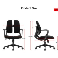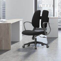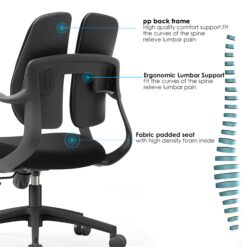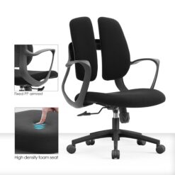 2) Fabric padded back + lumbar support with 2 parts